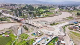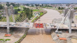 Esta semana se completó el montaje de las estructuras metálicas y se continúa con la instalación de tirantes, el vaciado de concreto en la losa del tablero y las obras en la defensa ribereña.