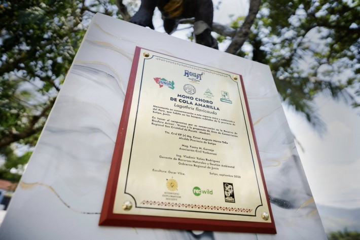 En el marco del Bicentenario de nuestra región y el IV Aniversario de la Reserva de Biosfera Avireri-Vraem, se develó la escultura conmemorativa al mono choro de cola amarilla en la ciudad de Satipo