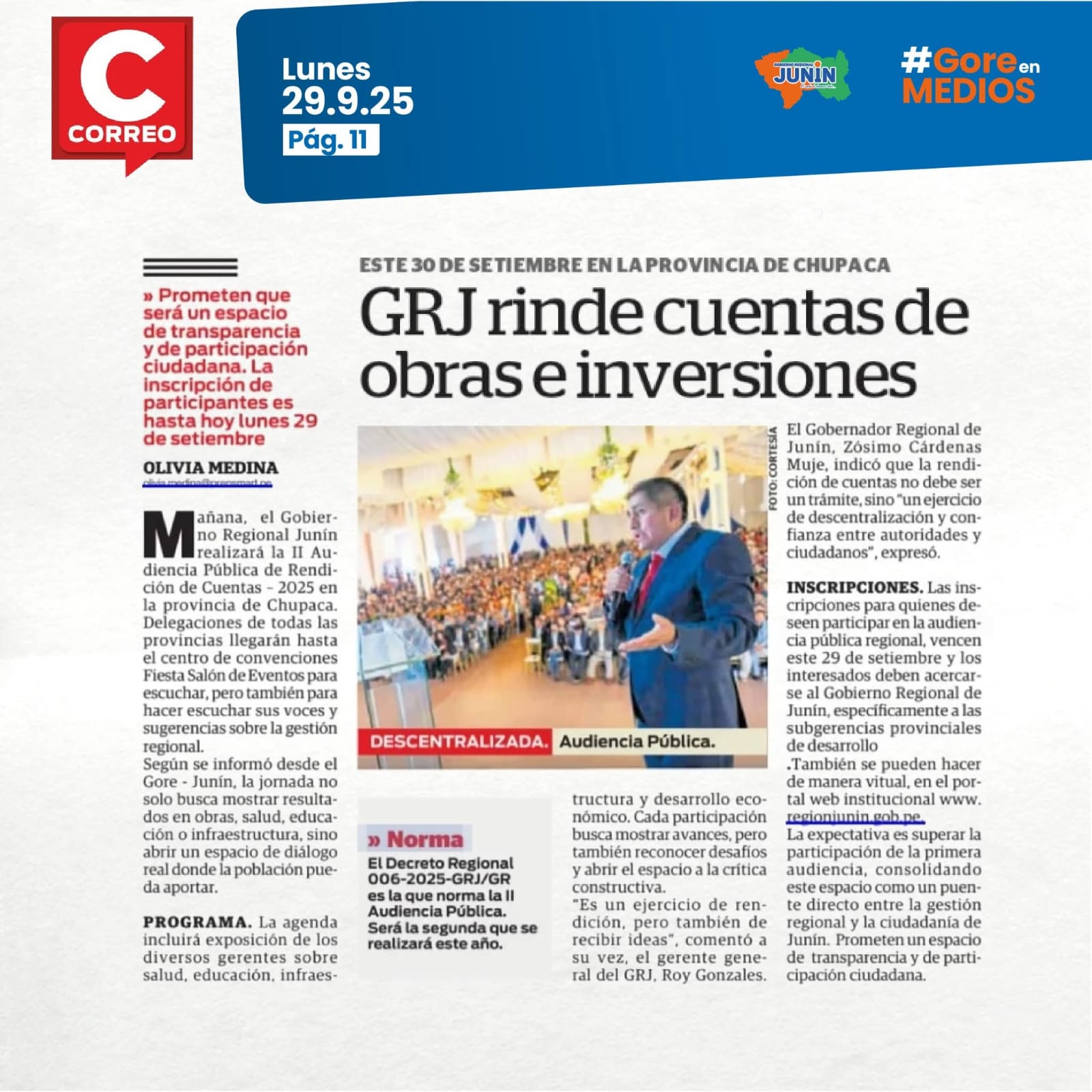 🔵🟠🟢 🔵🟠🟢 ¡Martes 02 de Octubre! Empezamos la semana con buenas noticias, la carretera agraria de Satipo a Concepción al 70% y el MEF transfiere más de 4 millones de soles a Junín para defensa civil.!