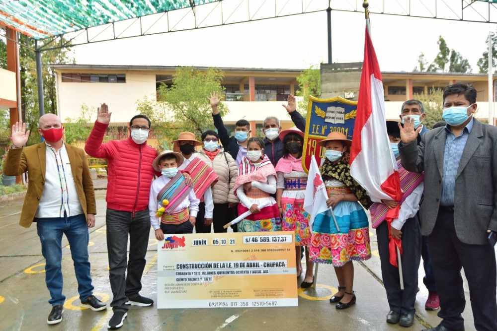 El alcalde de Chupaca, Marco Mendoza, aprovechó la ocasión para reconocer la ejecución de obras de parte del gobierno regional en su provincia. “Se construye el puente Comunero II, el hospital de Chupaca y ahora el colegio. Son obras que cambiarán la historia de Chupaca y su población”, expresó.