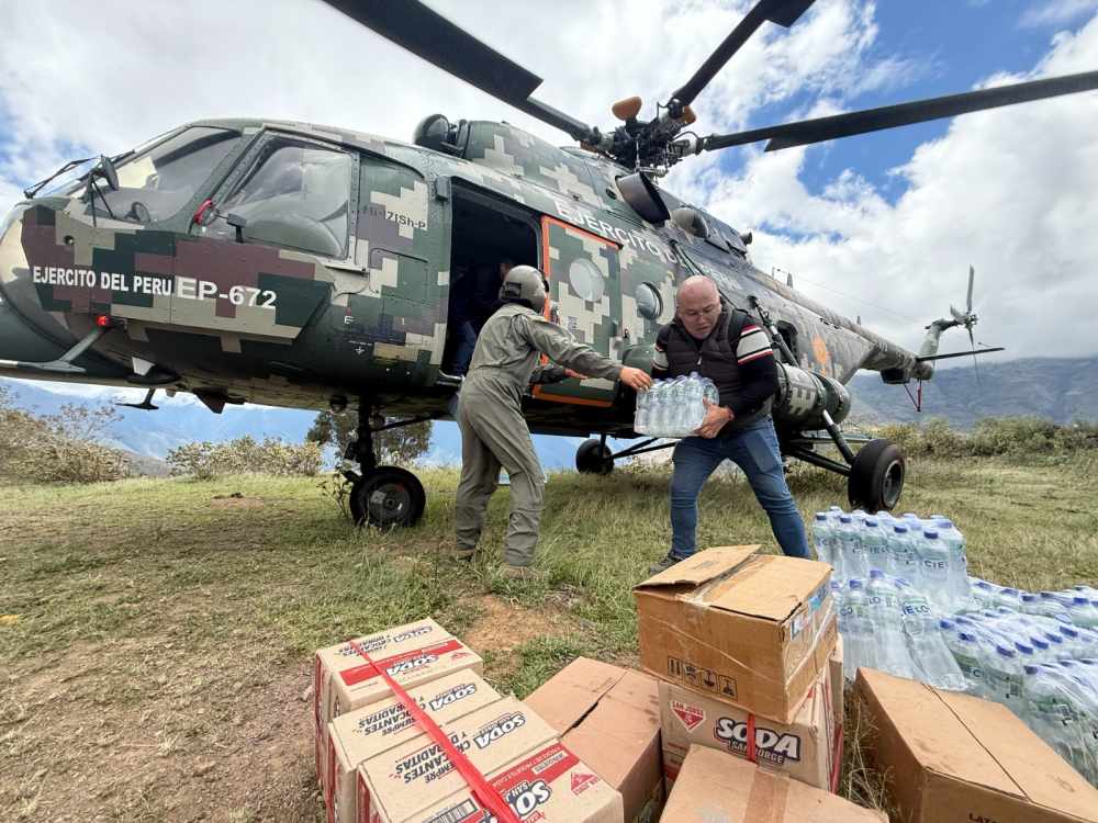 La comitiva llegó hasta el centro poblado de Matichacra a bordo de un helicóptero del Ejército del Perú, donde se realizó la entrega de ayuda humanitaria consistente en alimentos no perecibles, agua, frazadas, botas de jebe y colchones, destinados a los equipos de búsqueda y a los comuneros que continúan con las labores de rastreo en zonas agrestes y de difícil acceso.